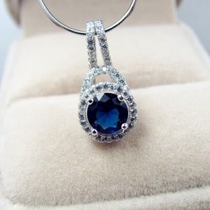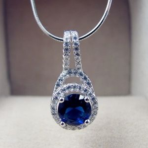 Elegant 925 Sterling Silver Blue AAA Zircon Pendant Necklace
