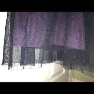 Runway style! Perfect condition. Dress is so sexy & feminine - 100% silk w/black tulle skirt. Sleeve detailing is delicately feathered. Jacket is loose & so comfortable. True color is dark navy & rich purple.