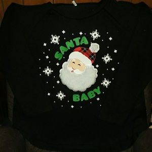 Black long sleeve shirt. Thick t-shirt or thin sweatshirt. Cute for an ugly Cmas sweater day at work. Save it for next year's work party. XXL but could fit me loosely and I'm a M/L. So I'd say anywhere from a loose medium to a slim XXL.