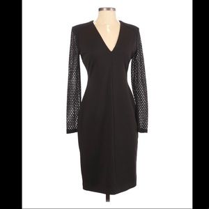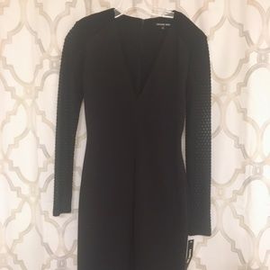 NWT Black Gianni Bini cocktail dress! It has a deep V, net sleeves with structured shoulders. It’s more of a midi length dress than mini! Never been worn!