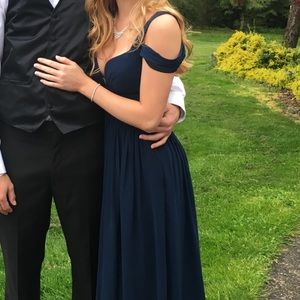 Dark blue off the shoulder dress only worn once. In perfect condition. Looks beautiful on