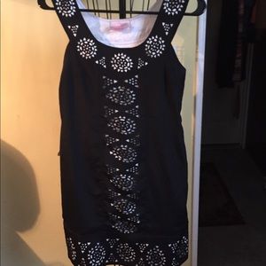 It has a white design around the collar down the front of the dress and around the bottom and you can wear it out or just lounge around the house either way you’re going to look good