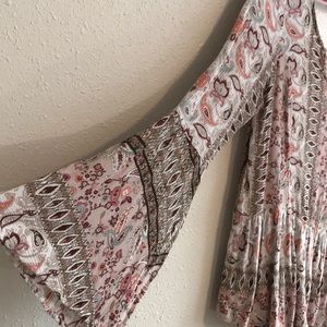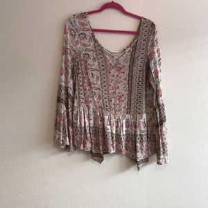 Boho patterned shirt with bell sleeves and cross cross front neckline. Bought from LuLus