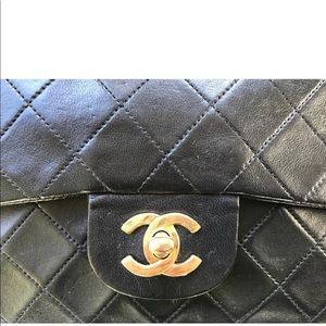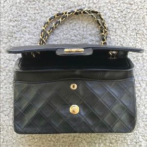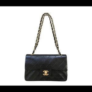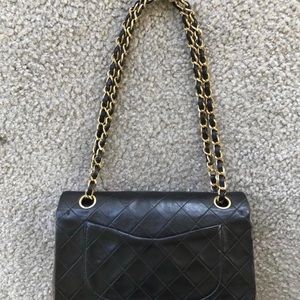 100% Authentic Chanel Vintage Black Lambskin Quilted Classic Flap Bag