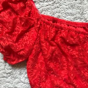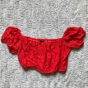 NEW Topshop Large Red Floral Lace Bardot Off the Shoulder Crop Top Blouse