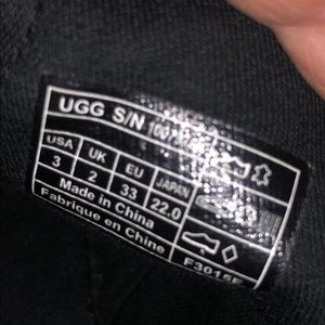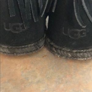 Kids UGG black suede moccasins with fringe and gold cheetah details. Kids size 3. In excellent condition. A few fringe pieces missing but not noticeable. Bottoms are nearly new, my daughter barely wore them. From a clean smoke free home.