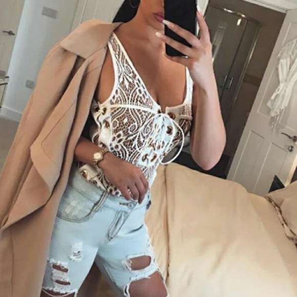 Last L• Sexy Lace Up Bodysuit | White
