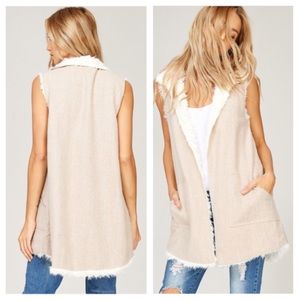 Reversible ruffle Wrap Vest! Herringbone pattern on one side and shaggy faux fur on the other! High Collar. 2 front pockets on BOTH SIDES! Available in TAUPE/IVORY. VERY LIMITED STOCK! Duster Utility Fuzzy Cardigan Vest Faux Fur Bomber Jacket Loose Waffle Knit Sweater Oversized Slouchy Sweater Ruffled Sleeves poncho cape oversized blazer Camel distressed denim Spring Trench Shearling lined puffer teddy spring trench shearling lined