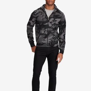 With an allover camo print grounded in grey, this double knit Polo Ralph Lauren hoodie puts a military inspired spin on sleek sportswear.