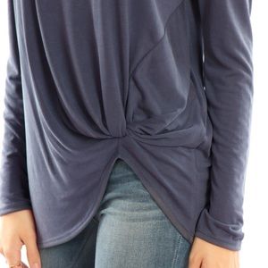 Navy colored, long sleeve, twist/knot front detail.