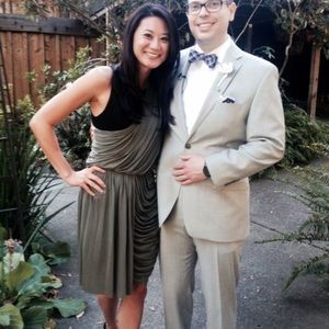 Worn only a couple of times, really flattering drapey dress and comfortable!! I bought this brand new, excellent condition. Size 4, fits like a 0-2. I’m a bust 32, waist 26 and this fit me well, not too tight