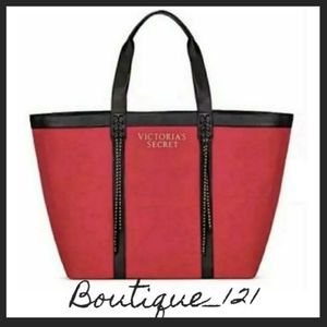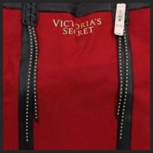 Red Victoria's Secret Tote with Black Straps,Trim and studded tassels! Very Large & Roomy! Brand New with Tags!