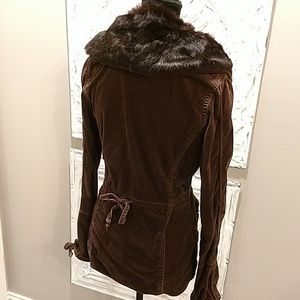 This is one of my favorite jackets. I have two in Black, so this one never gets worn. The Rabbit fur collar makes this jacket luxurious and extremely comfortable. Dark chocolate brown color, is absolutely gorgeous. Waist and arm cuffs are both adjustable for Comfort. Please see photos for description and details.
