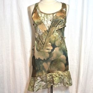 ★NWT★ Shimmering Green & Gold Flirty Lace Sleeveless Dress