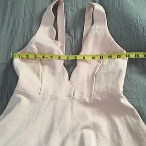 A fun and flirty Akira Chicago adorable, playful, pink with low open back and long scalloped V on chest. Size medium. See measurements for exact fit and length of skirt which is on the shorter side. In like new condition.