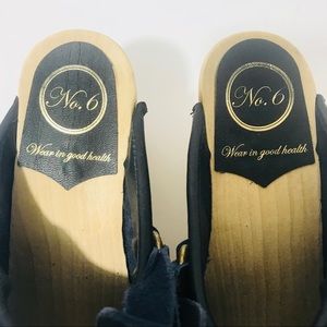 No. 6 clogs dark navy blue color sz 40 overall good condition some minor wear on sole as shown in last two pictures.