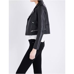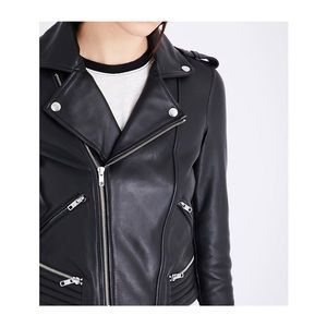 “An investment piece that will only get better with age, Maje masters the leather jacket with its Basalt design. With all the trappings of a traditional biker style - note the side collar, shoulder epaulettes, heavy zipper detailing and ribbed panels - this is piece that will appeal to fans of tough-luxe fashion. Cropped to keep it classic, it pairs great with longline t-shirts and jeans, but looks super chic left loose over a cutesy dress.”
