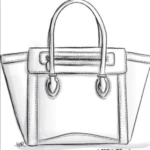 Long, adjustable detachable shoulder strap and has a handle with a 5" drop. Style is a "trapezoid" or a "trapeze" bag. I have included a drawing of the style since it is hard to see exactly in my pictures. This style is super soft leather, so it doesn't stand up like a harder leather would. Laced leather flap with long fringe. Magnetic closure. No dustbag. Opening with magnetic closure. Small-to-medium size. 0ne tiny mark on the back - see last pic. Measurements in the comments.