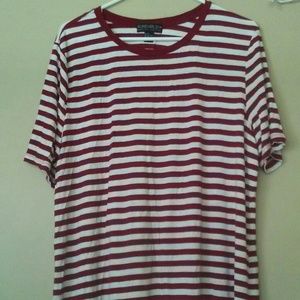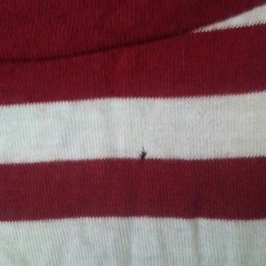 Red and white striped tee!! Soft material. Very small hole in front near collar