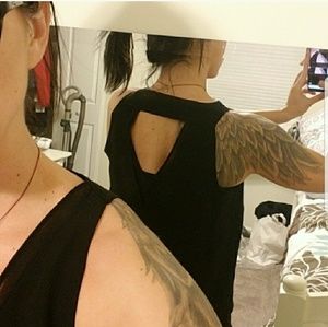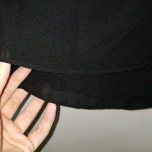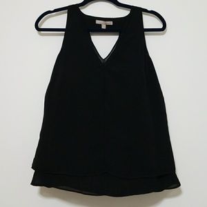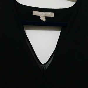 Black V neck tank with a v cutout back. Very pretty worn alone or with a sweater to the office. 2 lightweight layers, as shown in pic #7