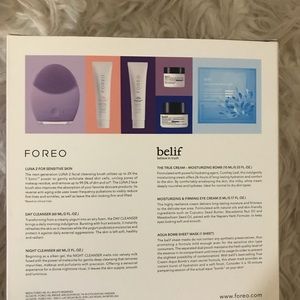 Brand new in box! Foreo Luna 2 Brighter together value set that comes with Foreo Day and Night facial cleanser and Belief eye cream, cream and sheet mask. Value: $275