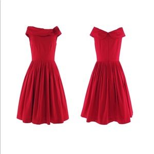 Emily and Fin red party dress