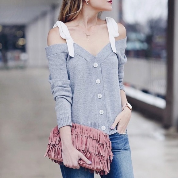 πTie Sleeve Off Shoulder Cardigan