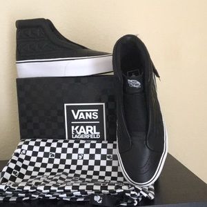 New with box and dust bag. Sleeve of box is missing. MSRP $140 designed exclusively for vans by the renown designer Karl Lagerfeld. Unisex shoe, sizes shown in Women's