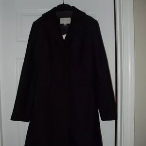 new with tags, never worn black wool coat, lined, size medium, snap front
