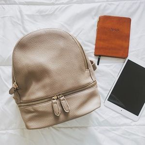 Mini Contemporary Vegan Leather Backpack - Taupe