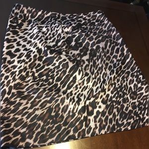 Animal print skirt with side zip, measures 24.5” long and 18” waist laying flat