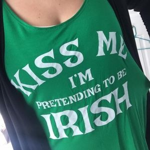 Super cute boutique St. Patty’s Day tank top! As shown in added pictures the tank fits SUPER loose around armpit area! Best warn with a tanktop under! Brand NEW without tags! Runs a little big! Perfect for going out