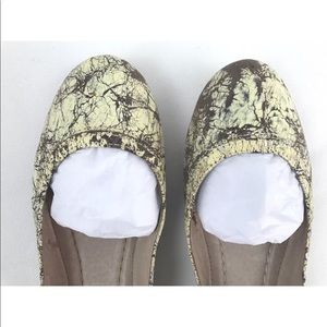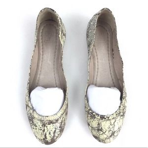 * Frye Leather Ballet Carson Metallic Silver Ballerina Crackle Flats