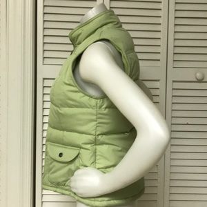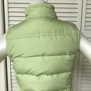 Lime green puffer vest; 100% polyester. Down and feathers. 70% down and 30% waterfowl feathers