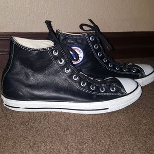 🖤Black Leather All Star Hi-Tops🖤