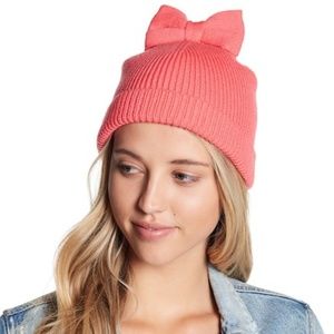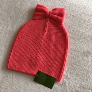 Keep your head warm on chilly days while giving your ensemble a feminine finish with this ribbed beanie topped with a chic, signature bow. New with tags from Kate Spade.