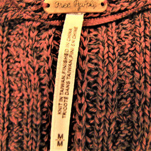 FREE PEOPLE unusual PLUM (color is a soft plum rusty ) color beautiful DRAPED WATERFALL style CARDIGAN sweater, CABLE, OPEN WEAVE KNITTED design , in excellent condition, size M