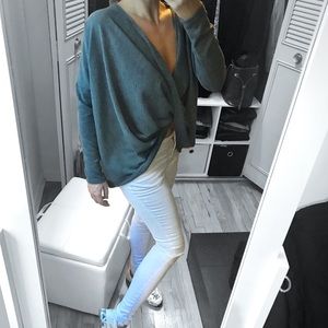 Steel Blue Draped Crossover Sweater