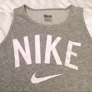 Nike Logo and Swoosh Dri-Fit Tomboy Tank. Heather Grey with White Lettering, Size Large.