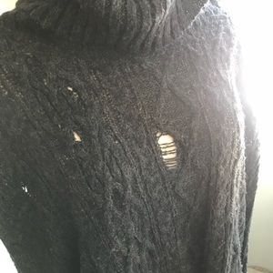 Turtleneck sweater by free people, oversized with distressing all over cable knit. Great condition. Long folded sleeves.
