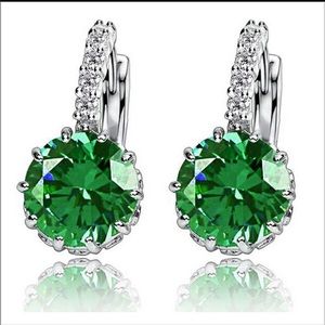 CZ Crystals Silver Hoop Earrings NEW