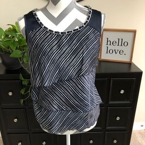 Show up in style with this beautiful blue and white Alfani tunic. Beautifully adorned with a silver metal collar. Size PM
