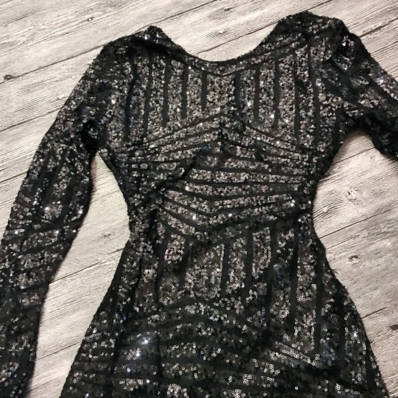 💕Celebrity! Sexy Black Long Sleeve Sequin Dress