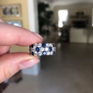 14k White Gold Diamond and Sapphire Ring. Purchased 7 years ago at a fine jewelry store in Boston. No papers but the diamonds are a nice white and sapphires are a deep blue. Not sure why picture is bury, it is GORGEOUS and in excellent condition. Only wore a handful of times. Size 6 and height is one centimeter over 1/4 inch.