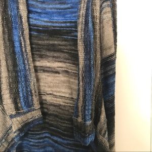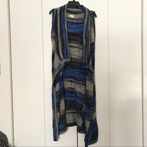 Warm long sweater vest in blue, black, gray, XS.