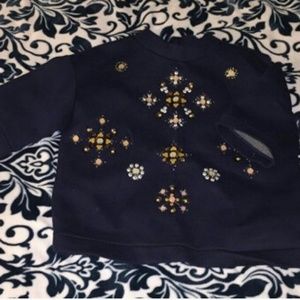 So cute and ALWAYS on trend. H&M sweater/stiff material skirt and top. Both pieces have stitch beaded embroidery. No stones missing. Too beautiful to separate. Selling as a set. No longer available anywhere. Ask all questions.