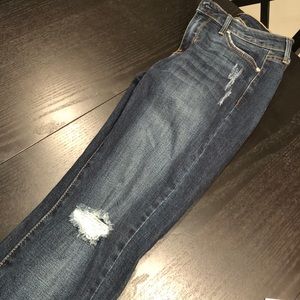 Worn once, JustBlack skinny jeans! Features a cute ripped detail on each knee. Dark wash.