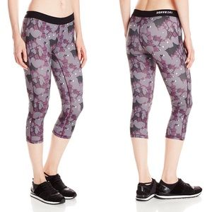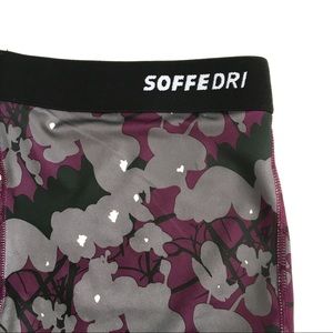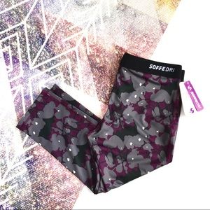 SOFFE's athletic capri leggings feature sweat-wicking light-impact material for a dry comfort fit in a low-rise design, with an allover plum & grey midnight blossoms print. Size L, runs slightly small to size, fits M or sizes 6-8, measures approx 14.75" across waistband, 27" long, 18.5" inseam. Brand new, NWT. Please feel free to make an offer, bundle for greater discount, or ask any questions! :)