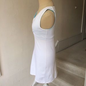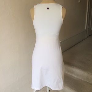Very comfortable athletic v-neck dress from Zobha. Has a small amount of very very light yellowing around the under arms and below the bust, but again is quite faint. Otherwise it is in very good used condition. Approximate measurements laying flat: bust 14” waist 13 1/2” hips 19” length 31 1/2” a01.* eb