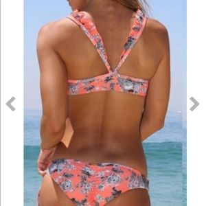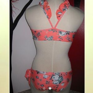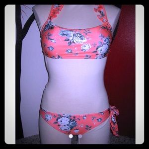 🆕 Cute peach colored swimsuit with floral pattern and ruffles on shoulder straps. Decrotive bow on hip area can be tied multiple ways for a different look. Sizes run small so order one size larger than usual for best fitting results! (Brand new)